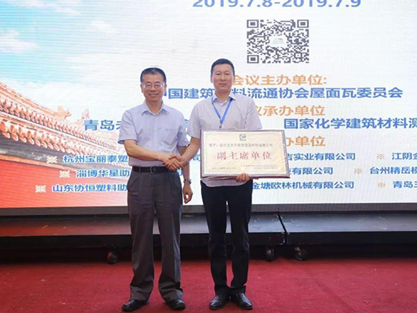2019年7月公司被中國.建筑材料流通協會屋面瓦第二次委員會授予副主席單位,公司總經理常明皎被聘為中國建筑材料流通協會屋面瓦委員會副主席。
